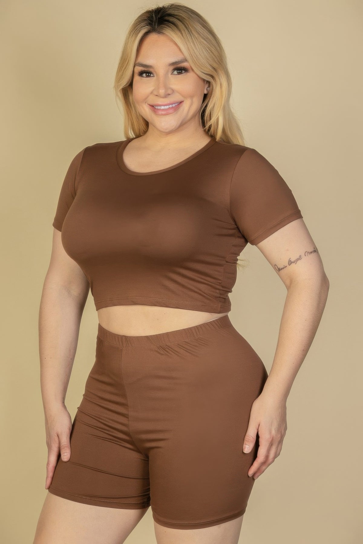 Plus Size Short Sleeve Crop Top & Shorts Set