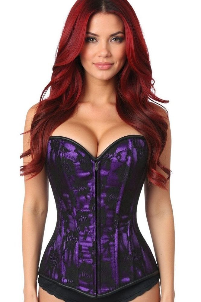 Lavish Purple Lace Front Zipper Corset - Love it Curvy