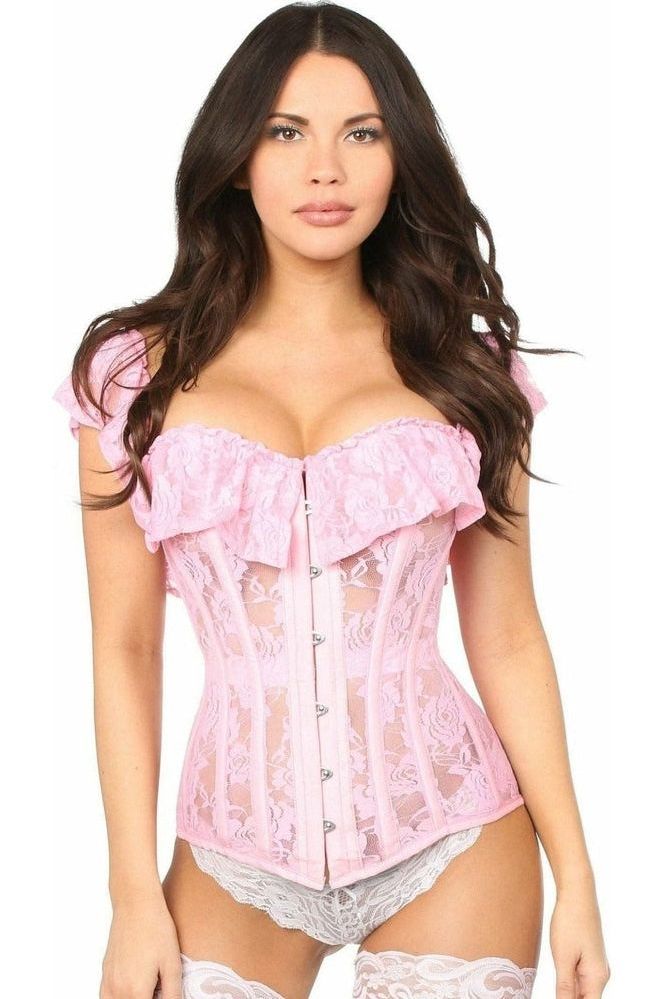 Top Drawer Lt Pink Sheer Lace Steel Boned Corset - Love it Curvy